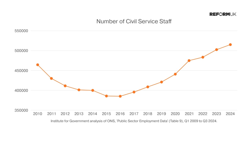 In the last 30 years Whitehall has swollen vastly beyond its proper bounds. After the financial crisis in 2008 the headcount of the civil service started falling but – and here my former party is highly culpable – after Brexit it resumed the inexorable growth, passing the 500,000 mark in 2023.